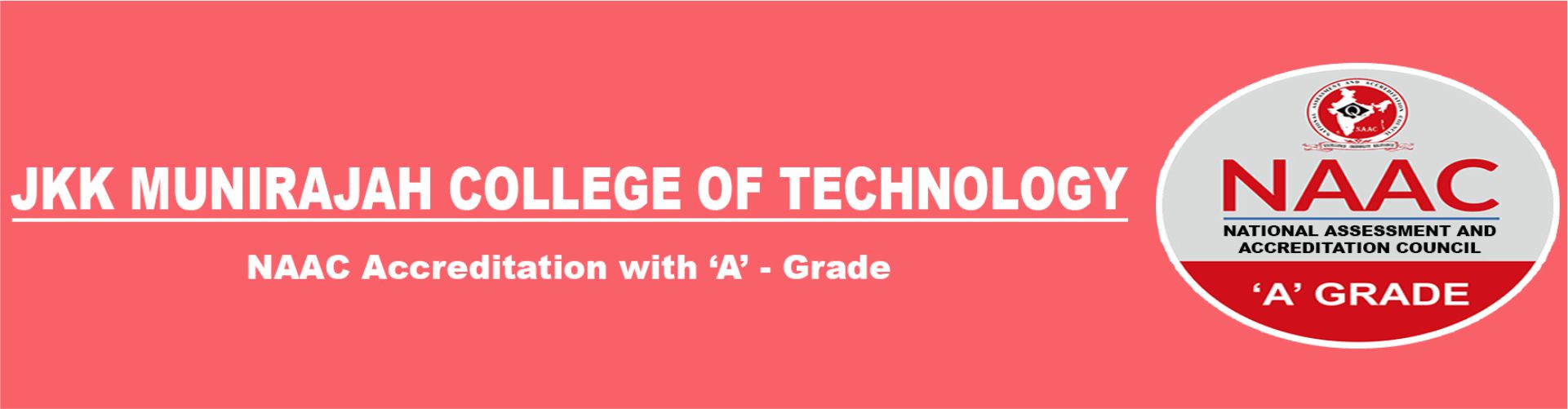 J.K.K. Munirajah College of Technology, Approved by AICTE, New Delhi and Affiliated to Anna University, Chennai, An Autonomous Institution & Accredited by NAAC 'A' Grade, is situated in Thookenaickenpalayam, Erode, covering 23.58 acres near Gobichettipalayam, approximately 19.4 kilometers from Sathyamangalam. We offer bachelor's and master's programs across various disciplines, aiming to provide opportunities for talented students from rural areas to pursue courses in technology.